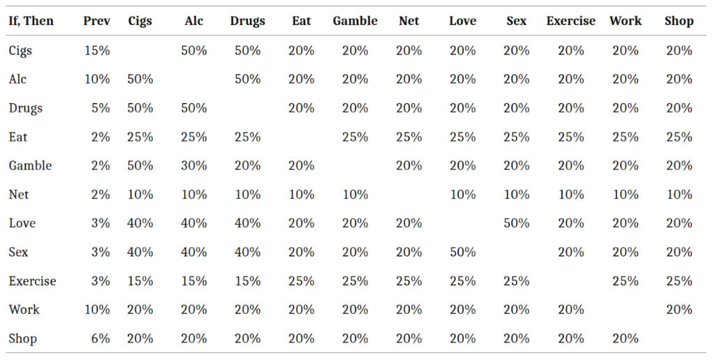 Figure 1: Prevalence and co-occurrence of 11 different addictive behaviors. Source: Evaluation & the Health Professions, used under Fair Use: Commentary.